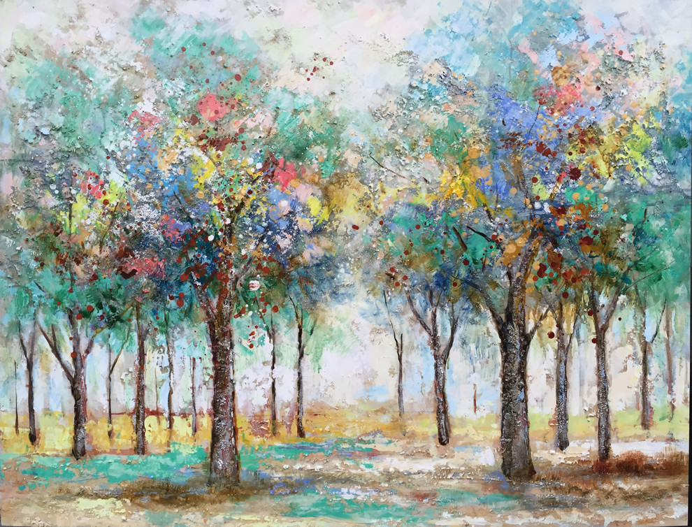 Colorful Trees I Hand Painted Oil Canvas Artwork Modern Art Fine Art Contemporary Paintings By Bayland Collection Houzz