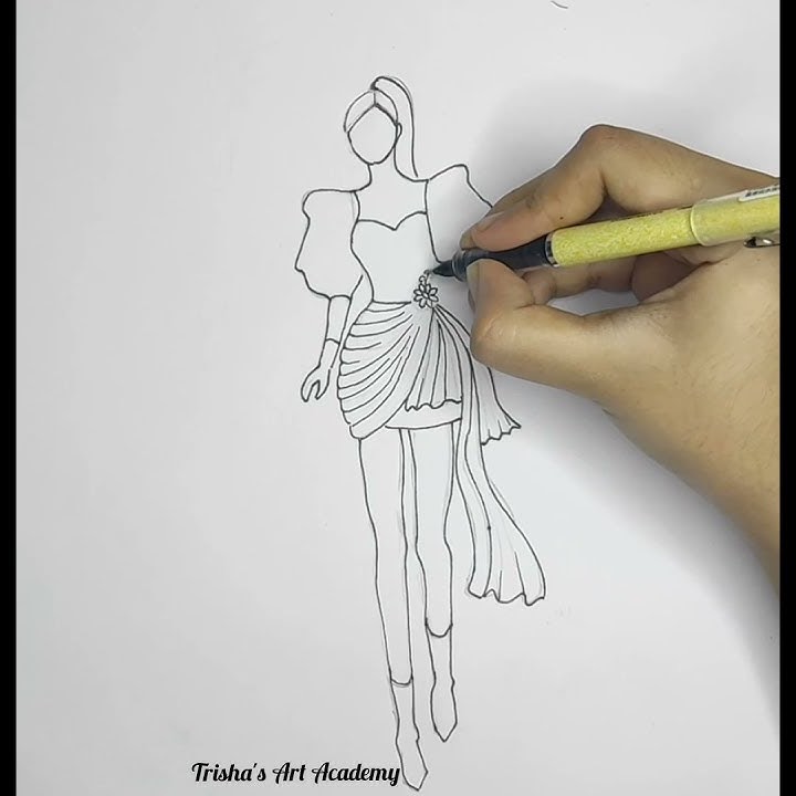 How To Draw A Beautiful Dress Drawing Design Easy Fashion Illustration Dresses Drawing Tutorial Youtube